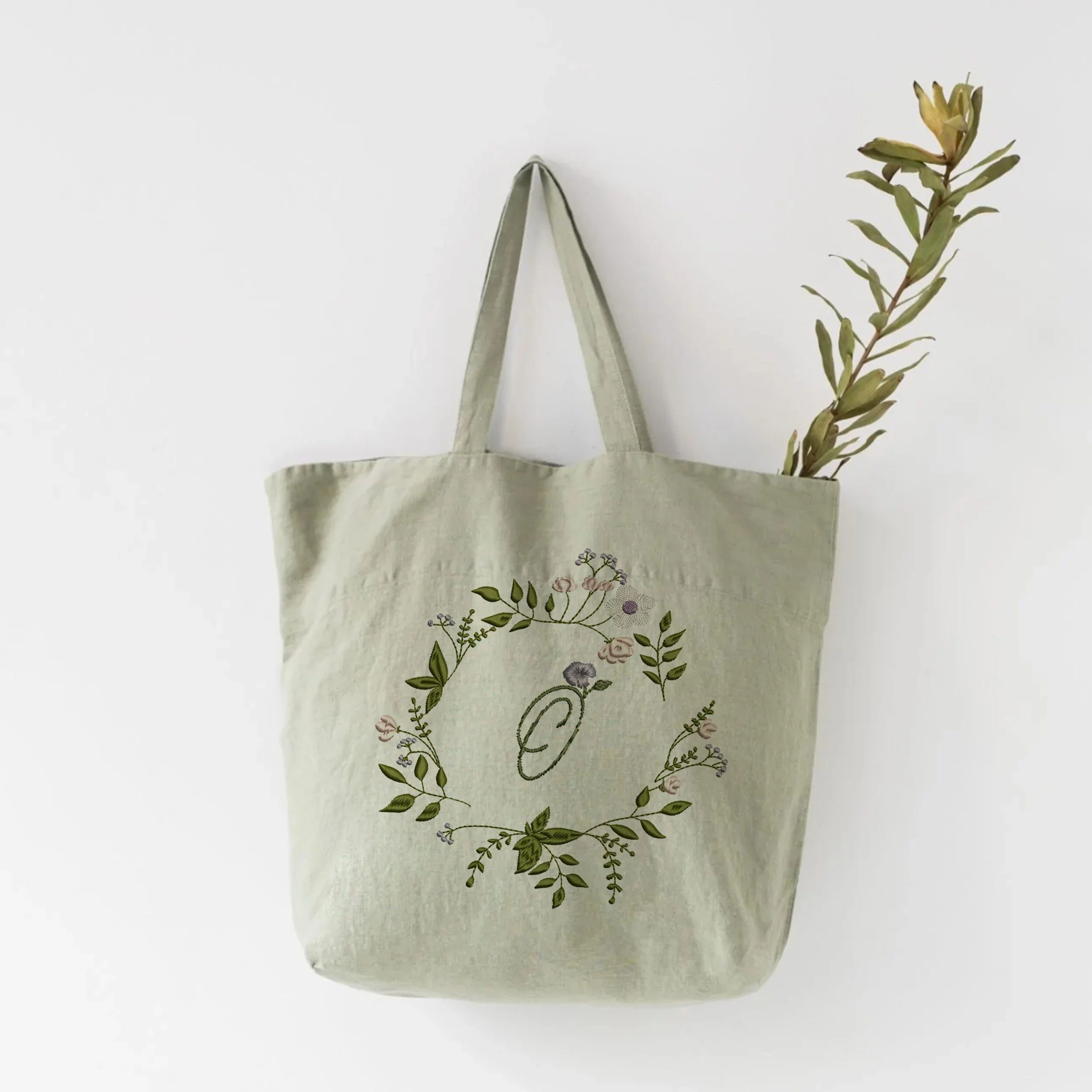 Rose and Eucalyptus Wreath for Machine Embroidery in 5 sizes: